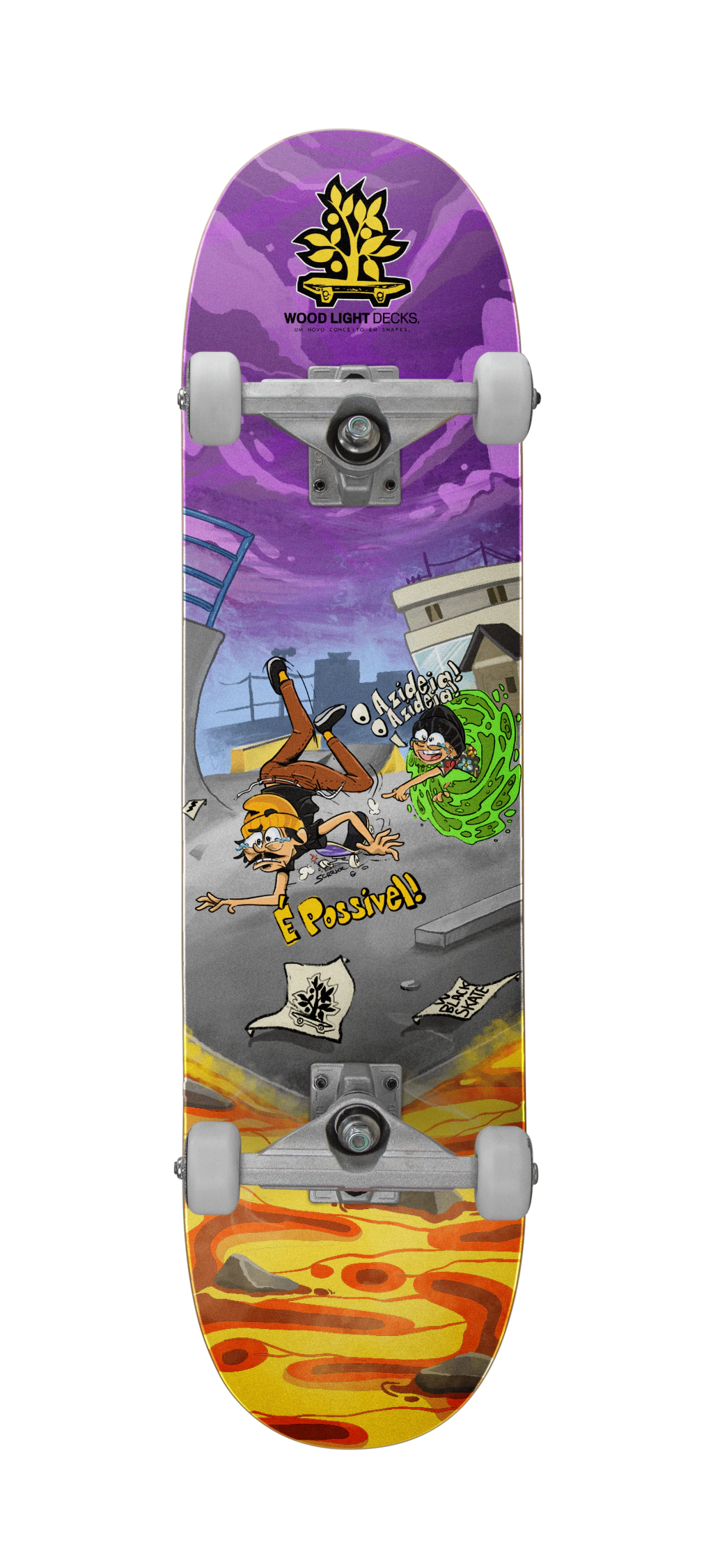 Produzido pela Wood Light, este skate se destaca por sua resistência superior e excelente pop (pressão), essencial para manobras e evolução no esporte.